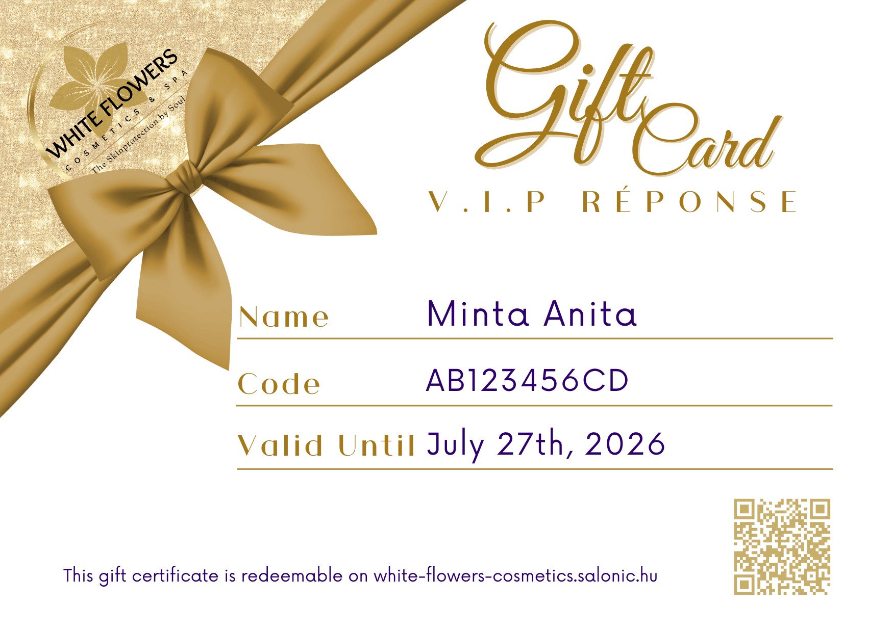 Tudnivalók a White Flowers GIFT Card felhasználásával kapcsolatban: